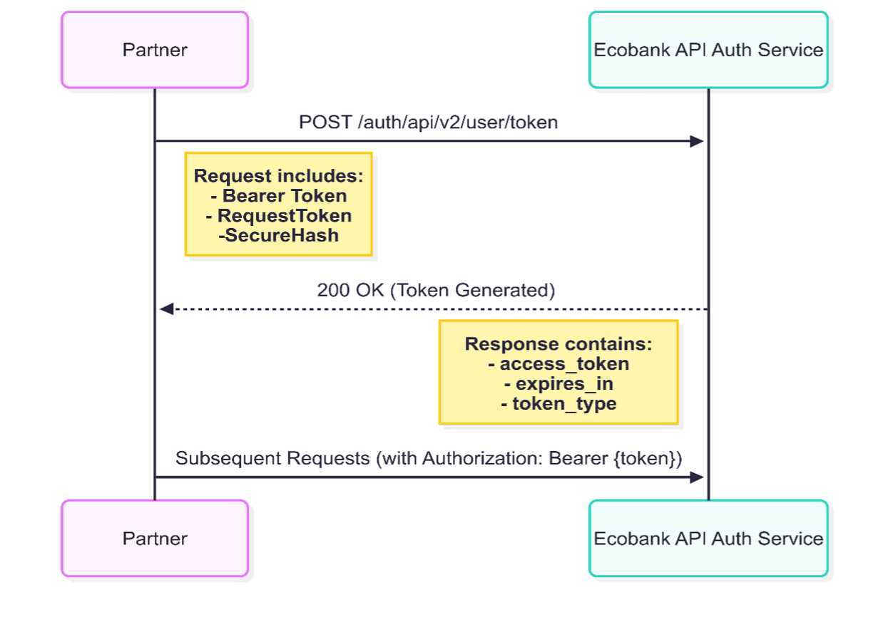 Use your API credentials shared by Ecobank or obtained from your dashboard to generate an access token by making a POST request to the token generation endpoint: